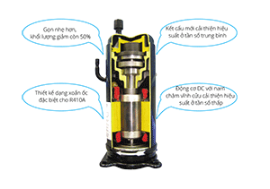 - Làm lạnh và sưởi ấm nhanh: Các máy nén DC biến tần đạt hiệu suất tối đa rất nhanh, việc làm lạnh và sưởi ấm nhanh hơn với mức biến độ nhiệt độ thấp hơn trong quá trình làm lạnh / sưởi ấm.
